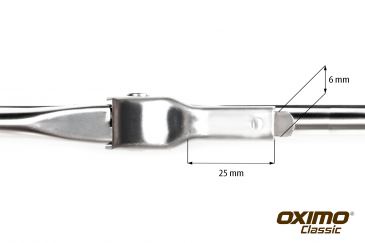OXIMO Classic ruitenwisser 325 mm met CG bevestiging. Vervaardigt uit RVS met een chrome finish wat zorgt voor een klassiek design. Perfect voor het behoud van de vintage styling van het voertuig. Het rubber bestaat uit een silicone compound met een PTFE coating wat zorgt voor een effectieve streeploze water afvoer gecombineerd met een stille werking en optimale levensduur.